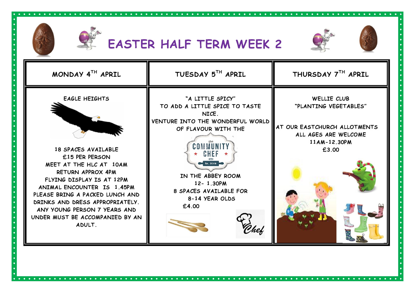 There are great activities to book your children into – from a visit to Eagle Heights to Cooking with Community Chef.