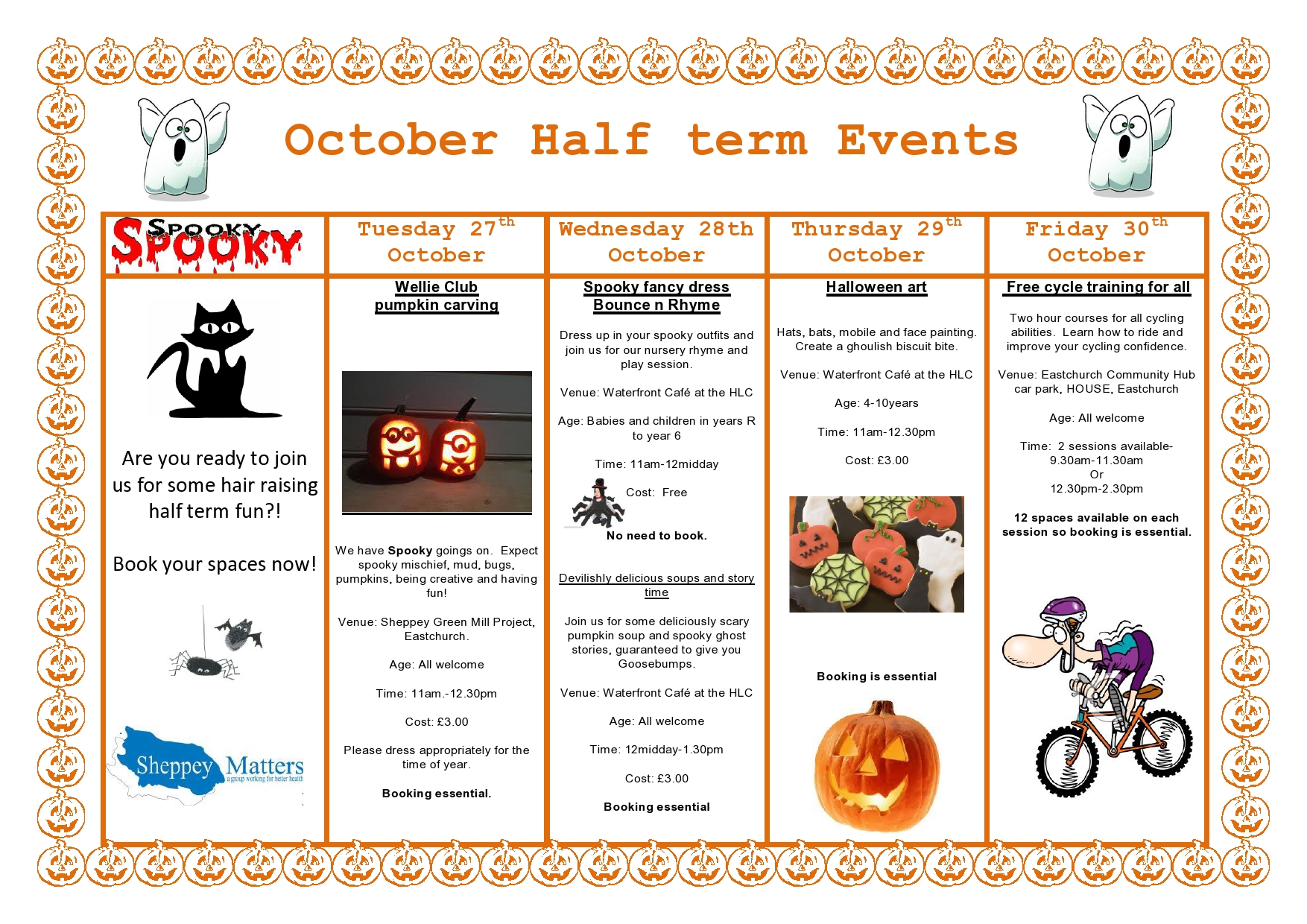 Hi all, please see our exciting program of activities for Halloween. Contact Fiona or Mikaela to book on 01795 585 335
