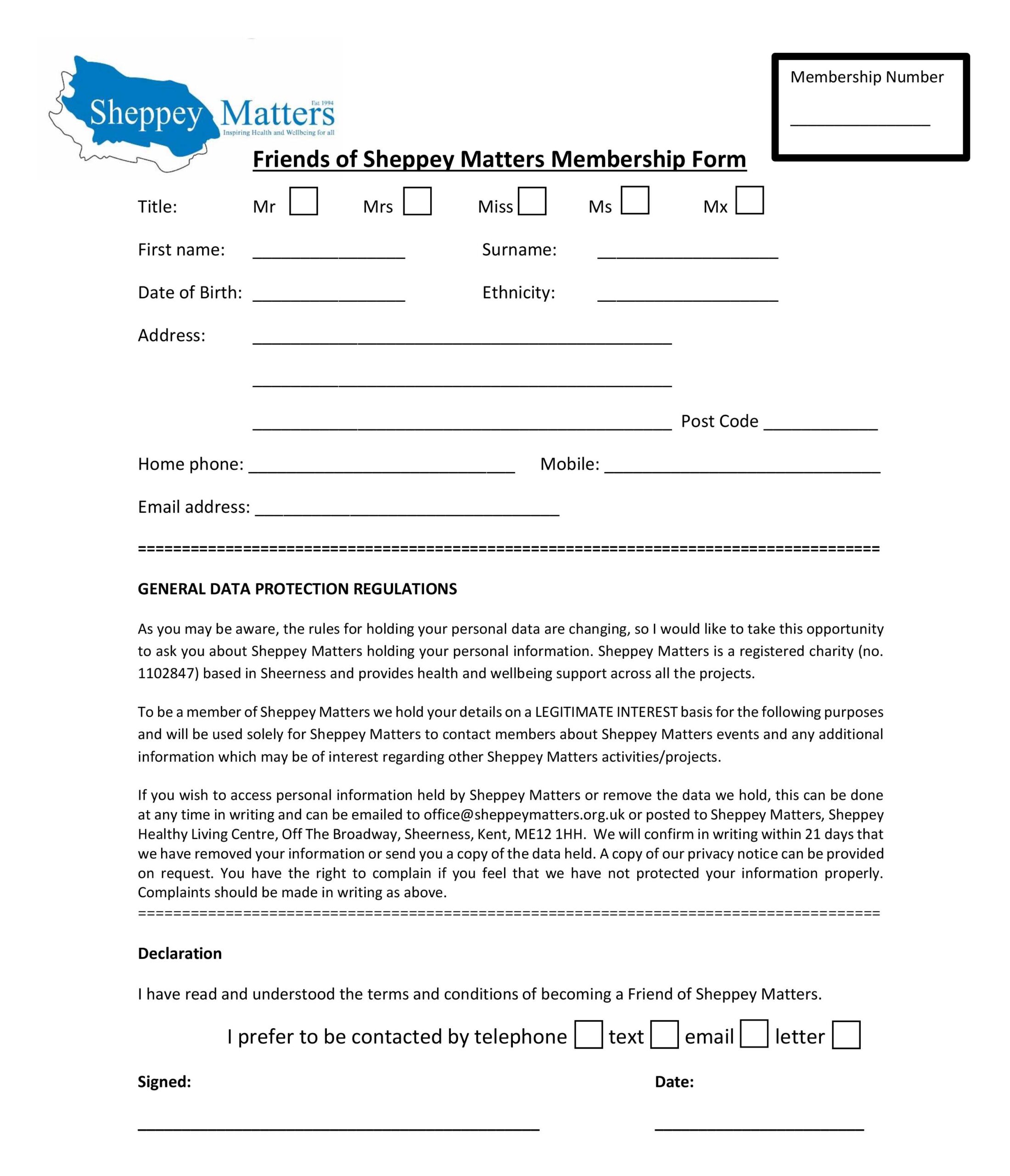 Fill out a form and pop it into our office or post to our address below: